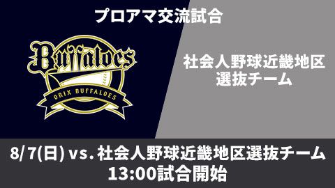 オリックス・バファローズでは、オリックス・バファローズファームチームと社会人野球近畿地区選抜チームとのプロアマ交流試合を下記のとおり行うこととなりましたので、お知らせします。