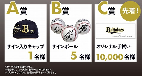 オリックス・バファローズでは、京セラドーム大阪で行われる8月7日(日)、8月11日(木・祝)の試合にて、スマートニュース株式会社(東京都渋谷区、代表取締役:鈴木健)による特別プレゼント企画を開催することとなりましたので、お知らせいたします。