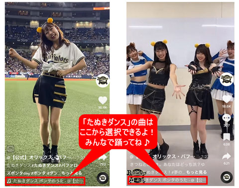 夏の恒例イベント「Bs夏の陣2022 supported by DmMiX」では、”THE SPECIAL 22”をテーマに特別な夏をお届けしております。そこで、8月27日(土)に今話題の「たぬきダンス」の初イベントを開催!試合前のグラウンドで「たぬきダンス」を一緒に踊りませんか?オリっこ限定となり、見事抽選で選ばれたオリっこ100名には「たぬきの耳+しっぽ(紙製を予定)」をプレゼント!更に、当日はBsGirlsメンバーから「たぬきダンス」レクチャーも行います。たぬきになりきって、試合前のグラウンドを華やかに盛り上げてください♪ご応募お待ちしております!