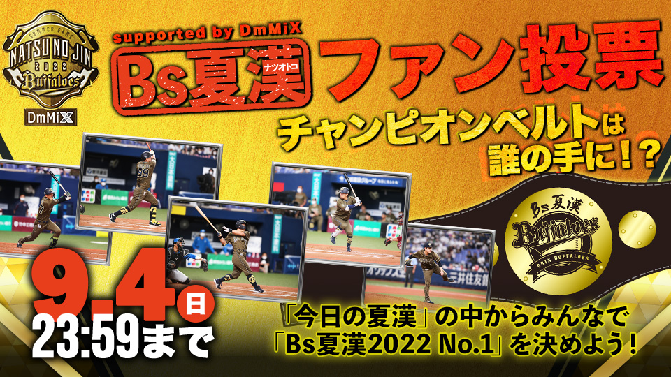 Bs夏の陣期間中に、Twitterにて選ばれた今日の夏漢(全5選手)の中から、「Bs夏漢2022 No.1」をファン投票にて決定いたします。最もBs夏の陣2022を制したと思う選手に投票をお願いします!
