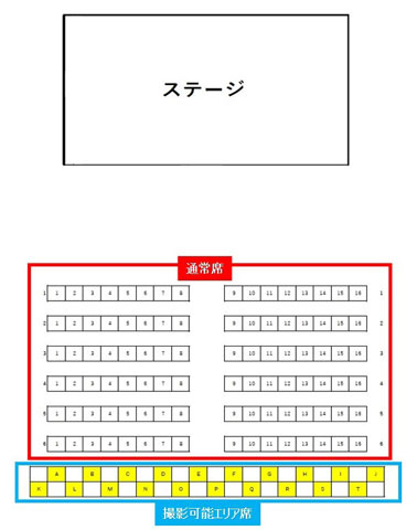 撮影可能エリア席は、席番ごとに範囲を区切ります。各席の範囲内での撮影・観覧をお願いいたします。