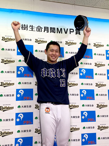 8月度パシフィック・リーグ大樹生命月間MVP賞に宮城大弥投手が選ばれ、受賞記者会見を行いました。