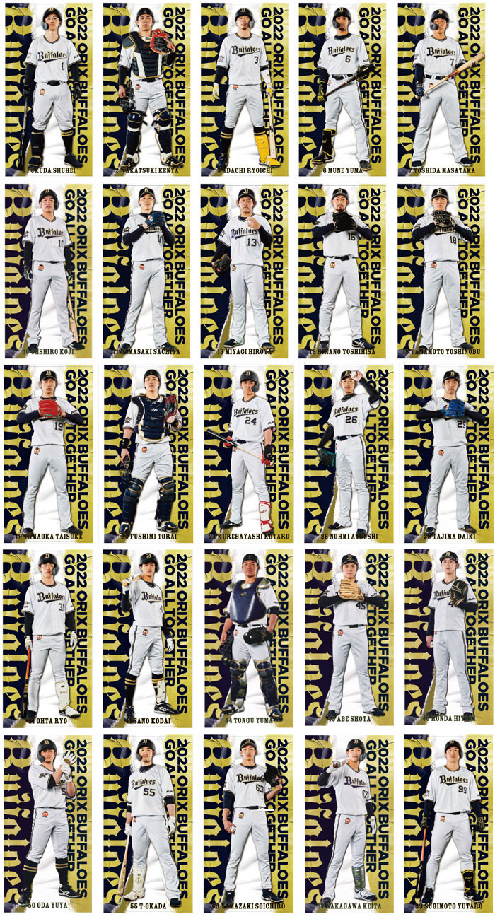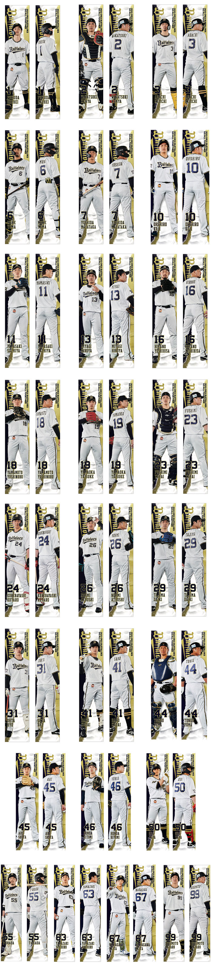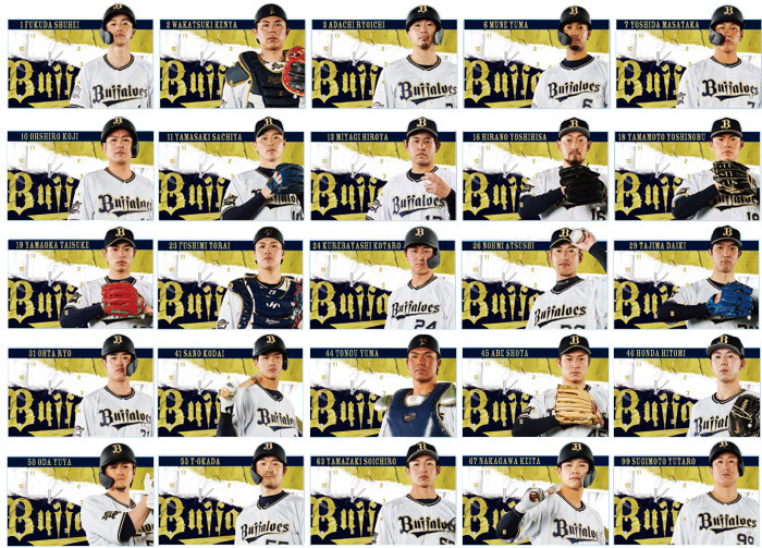 福田、若月、安達、宗、吉田正、大城、山崎福、宮城、平野佳、山本、山岡、伏見、紅林、能見、田嶋、太田、佐野晧、頓宮、阿部、本田、小田、T-岡田、山崎颯、中川圭、杉本