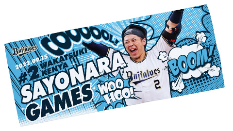9月15日(木)の北海道日本ハムファイターズ戦でサヨナラ勝ちをおさめました!この勝利を記念して、サヨナラゲームグッズを球団公式オンラインショップ限定で受注販売いたします。バファローズファンなら手にしておきたいアイテム。サヨナラゲームの喜びを分かち合いましょう!