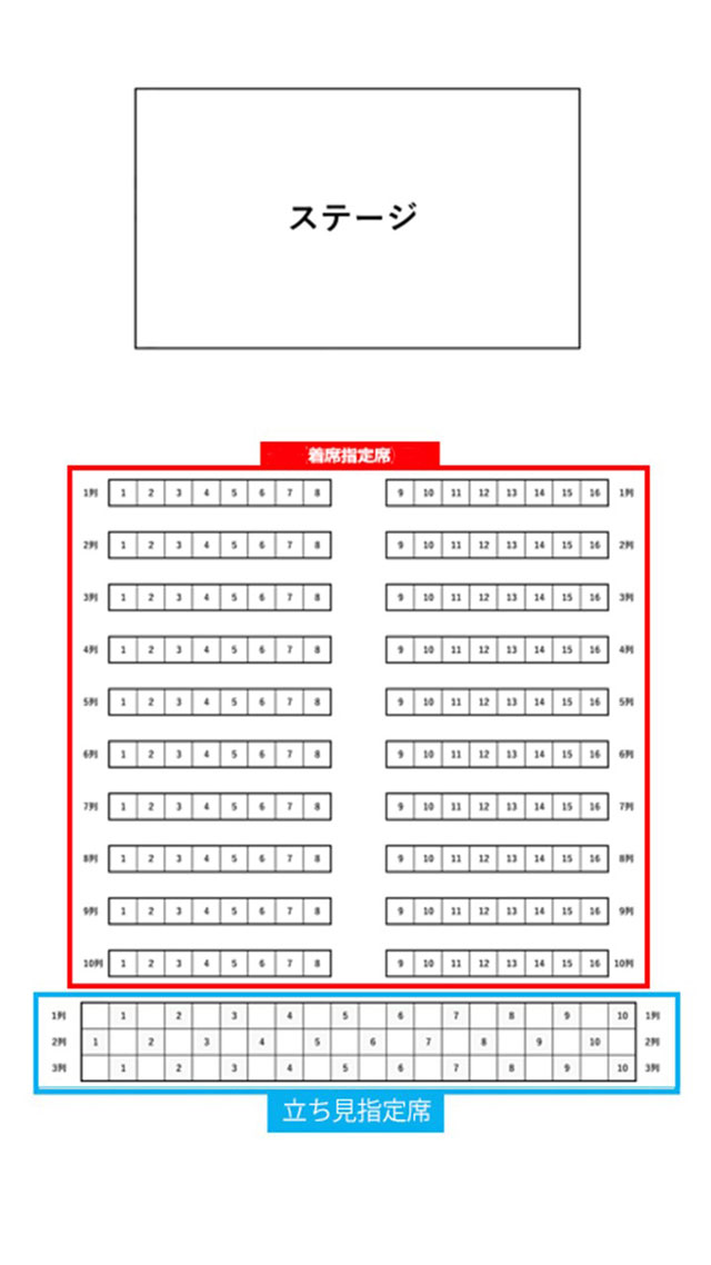 ※全席指定。着席指定席は着席、立ち見指定席は立ち見となります。