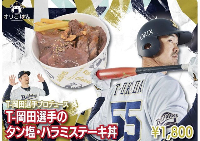 | 商品紹介 | 『T-岡田選手のタン塩・ハラミステーキ丼』 タンは塩だれで味付けしてハラミはステーキソースで仕上げています。 |