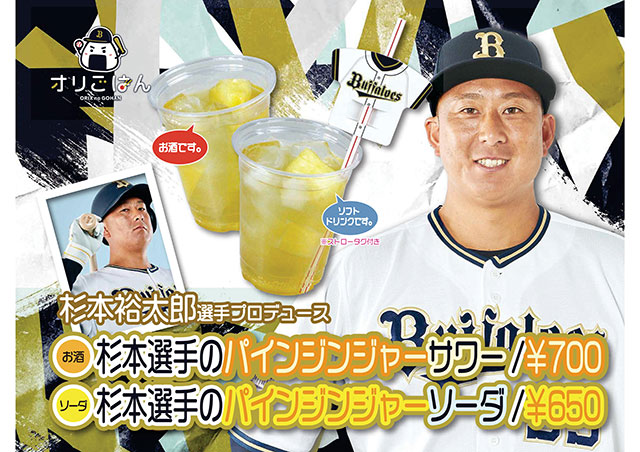 | 商品紹介 | 『杉本選手のパインジンジャーサワー』※お酒 『杉本選手のパインジンジャーソーダ』 大好きなパイナップルとジンジャーエールを使用した、 |