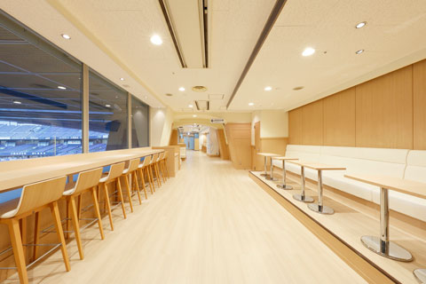 サッポロスターラウンジ(4F)へは、通路12又は13(3F)よりスタンド内へ入り、スタンド内階段をあがってください。