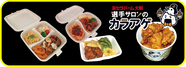 多彩な料理をご自由にご賞味いただくことができ、ご観戦席でもお召しあがりいただけるように、専用の使い捨て容器にてご提供しております。