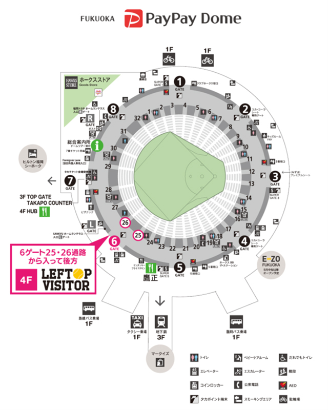 | 受付場所 | PayPayドーム内 4F「LEFTOP VISITOR」 ※6ゲート25・26通路から入って後方 ![]() |