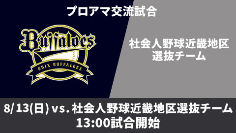 8月13日(日)に、オリックス・バファローズファームチームと社会人野球近畿地区選抜チームとのプロアマ交流試合を、杉本商事バファローズスタジアム舞洲にて行います。