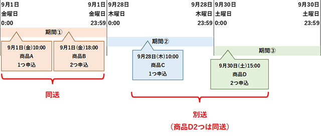 →商品C1つと商品D2つは別送(商品D2つは同梱して発送)