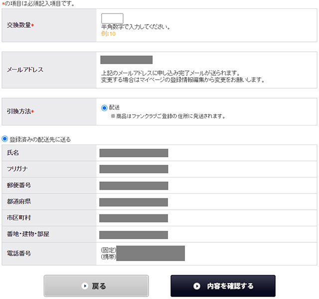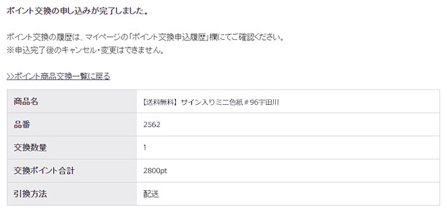 ※ファンクラブご登録の住所変更はポイント交換申込前にご変更ください。ポイント交換申込後に住所変更されましても、変更前の住所が反映されますのでご注意ください。
