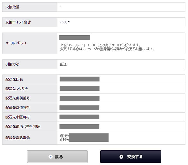 ※「受取拒否」をされた場合、今後ポイント交換をお断りする場合がございます。