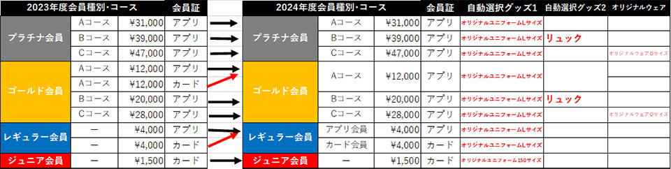 (1)2023年度ゴールド会員Aコース(カード会員)の方はゴールド会員Aコース(カード会員)廃止に伴い、2024年度ゴールド会員Aコース(アプリ会員)へのご入会となります。