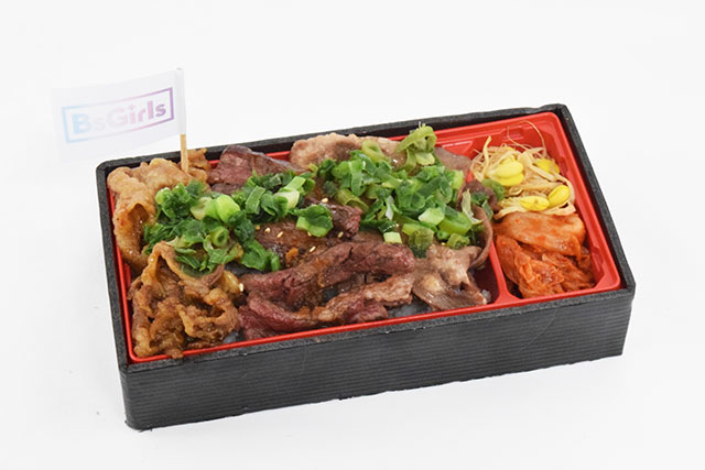 | 商品 | 『BsGirlsパワー注入♡弁当』 メンバーが大好きなタンやハラミなどお肉を中心にナムルやキムチをトッピング♪ネギたっぷりのパワー弁当です。 |