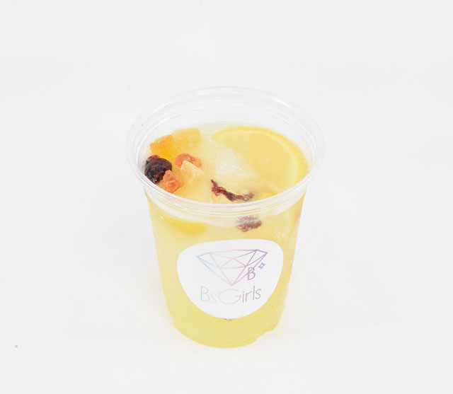 | 商品 | 『夏にぴったり!BsGirlsフルーツドリンク』 大人気のオリレモんとコラボ♪さっぱりレモンゼリーにドライフルーツをトッピング♪ |