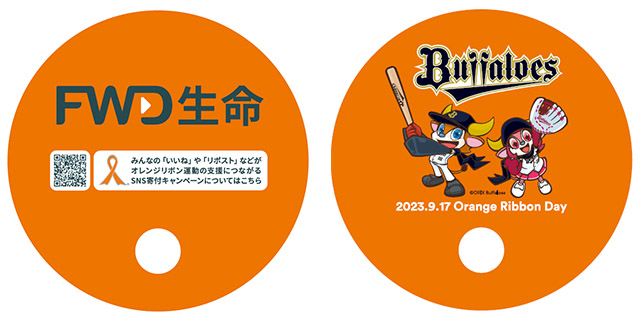 当日は球場内で「オレンジリボン運動」支援のための募金活動を行い、募金にご協力いただいた方にはオリックス・バファローズとコラボしたオリジナルステッカーをプレゼントいたします。