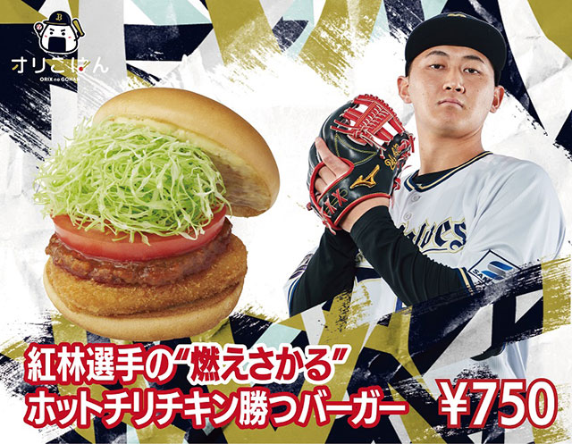 | 商品紹介 | 『紅林選手の“燃えさかる”ホットチリチキン勝つバーガー』 紅林選手の“燃える”をイメージしてモスのチリソースを使用したバーガーです。 |
