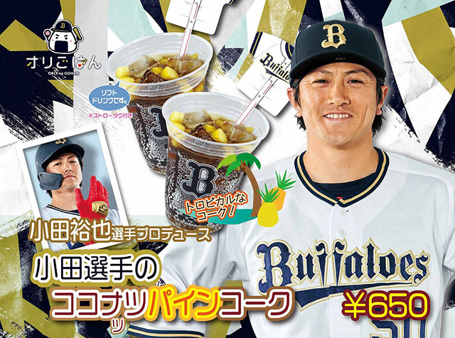 | 商品紹介 | 『小田選手のココナッツパインコーク』 コーラとパイナップルが好きなので、アクセントにココナッツシロップを入れることで南国風のドリンクに仕上げました。 |