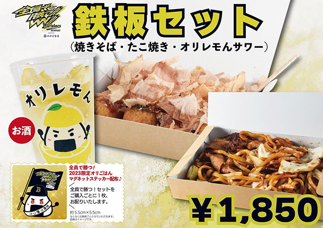 | コメント | 大人気の焼きそば、たこ焼きにオリレモんサワーをセットにしました! てっぱ(ぺ)ん目指して全員で勝つ! |