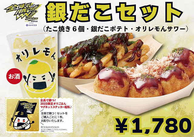 | コメント | たこ焼き、銀だこポテト(銀だこソース味)、オリレモんサワーをセットにしました! アツアツたこ焼きでホットになって全員で勝つ! |