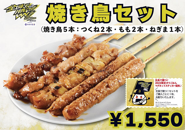 | コメント | もも、つくね、ねぎまを計5本!やきとり好きの為のセットメニューにしました! 100点満点で全員で勝つ! |