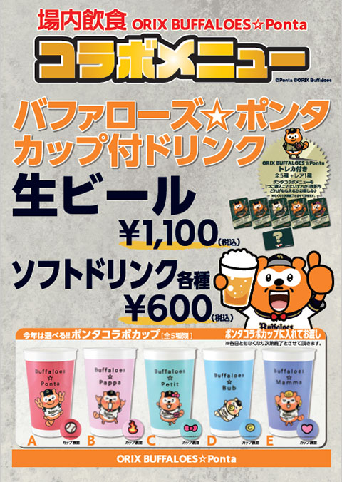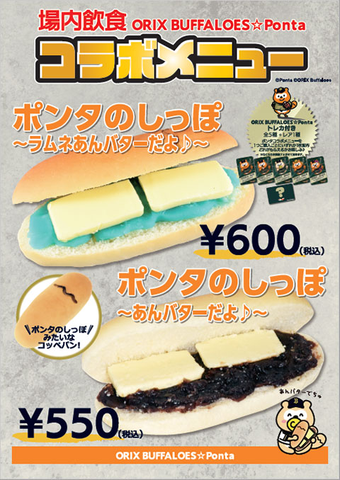 8月の「バファローズ☆ポンタDAY 2023」でご好評をいただいた「バファローズ☆ポンタコラボメニュー」を、9月16日(土)以降の試合でも一部継続販売いたします!