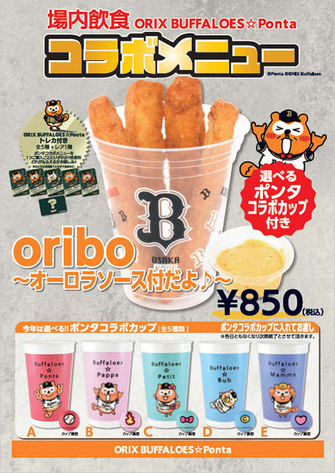 | 商品名 | oribo ~オーロラソース付だよ♪~ 【バファローズ☆ポンタコラボカップ入り】 |