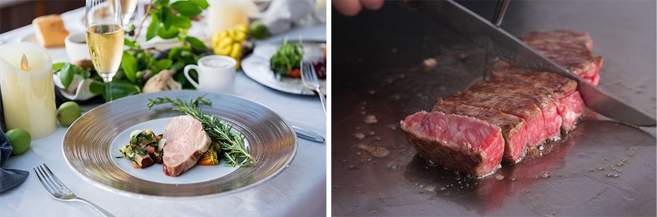 明石海峡大橋に沈む「夕陽」や、海の宝石箱のようにカラフルな「夜景」を船上から眺めながら、極上のお食事をお楽しみいただけます。