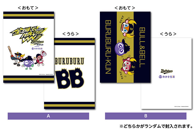 先着5,000名様にわかさ生活のキャラクターブルブルくんとバファローブル&ベルのコラボデザインクリアファイルと、オリックス主力選手の直筆サインボールやブルーベリーアイが当たるラッキーナンバー(チラシ)を配布いたします。