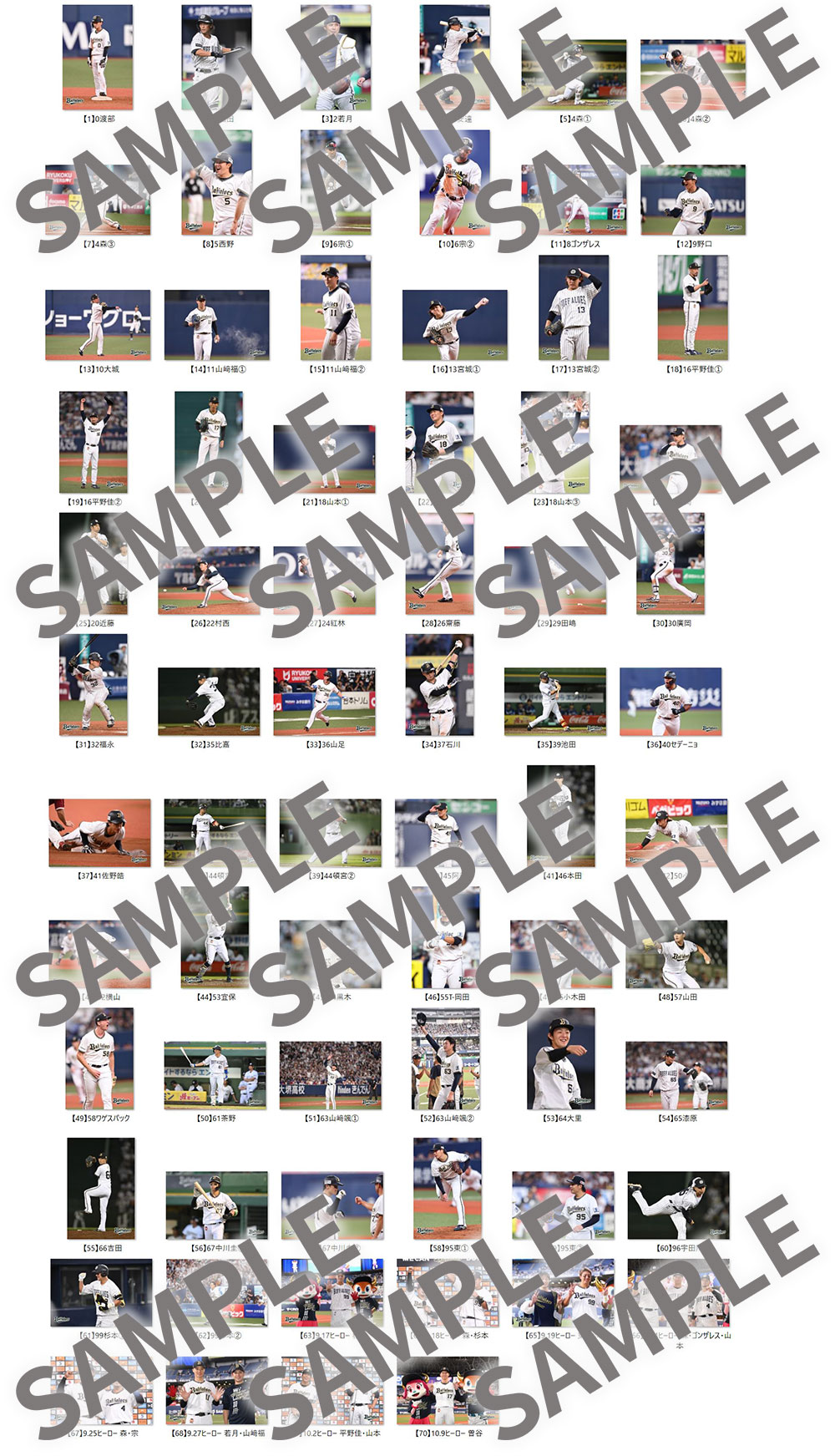 球団オフィシャルカメラマンが撮影した選手が輝く瞬間をポスターやフォトフレームにしてお届けする「マンスリーフォト」。緊張感漂うプレーシーンやヒーローインタビューでのあふれる笑顔など、9月・10月の主催16試合から厳選した計70点の中からお選びください!今シーズン最後の販売となりますので、お見逃しのないようチェックしてください!