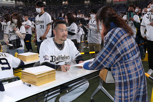※対象チケットをご購入いただいた方1名に対して、色紙1枚にサインいたします。(色紙・ペンは球団が準備いたします。お客様ご持参のペンを使用してのサインもできませんので、ご了承ください。)