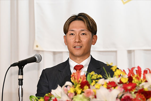 まずはケガをしないように気を付けて、打撃タイトルが取れればなと思います。ワクワクと不安、両方ありますが、楽しんでやっていきます。