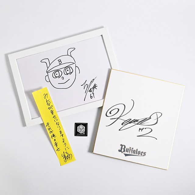 | ご注意 | ※直筆サインは、多少の滲み・歪み・かすれなどがある場合がございますのでご了承ください。 ※会員様1人1回までご応募可能です。 ※選手はお選びいただけません。予めご了承ください。 ※当選結果は賞品の発送をもって代えさせていただきます。 ※BsCLUB(ファンクラブ)にご登録いただいている住所に発送いたします。現住所がお間違いないか必ずご確認お願いいたします。 |