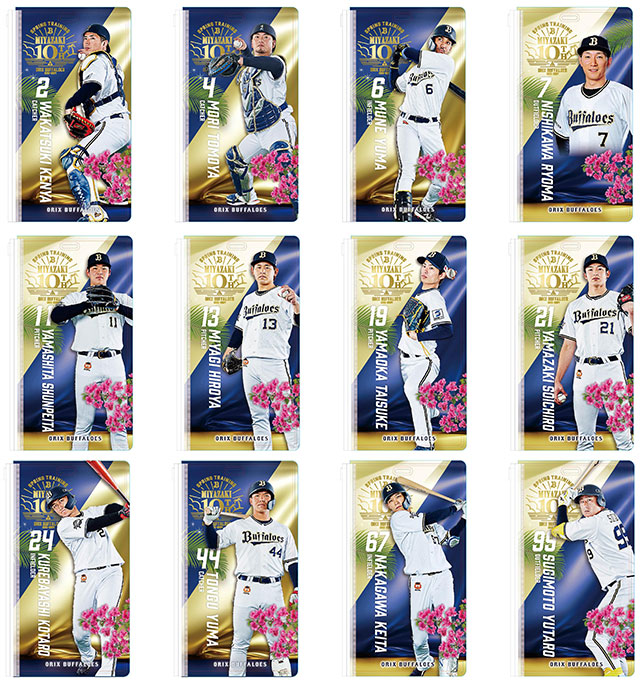 | 種類 | 宮崎市清武総合運動公園 グッズストア 若月・森・宗・西川・山下・宮城・山岡・山崎颯・紅林・頓宮・中川・杉本 球団公式オンラインショップ(受注) 上記12選手含む全選手・中嶋監督・バファローブル・バファローベル |