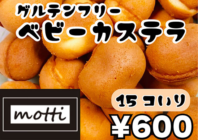 | 商品案内 | 米粉で作ったモチモチとした食感が特徴の「motti」のベビーカステラです! |