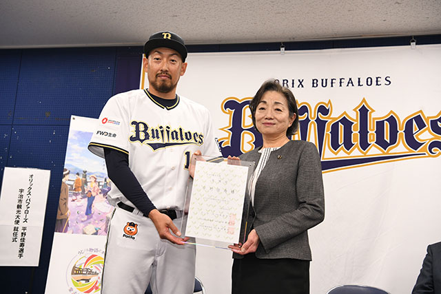 オリックス・バファローズでは、3月24日、京都府宇治市出身の平野佳寿投手が宇治市観光大使に任命されました。