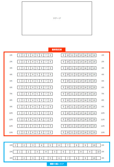 ※全席指定席。通常席は着席、撮影可能エリア席は立ち見席となります。