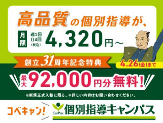 関西を中心に約360校を展開する「コベキャン!」でおなじみの個別指導キャンパスからのお知らせです。