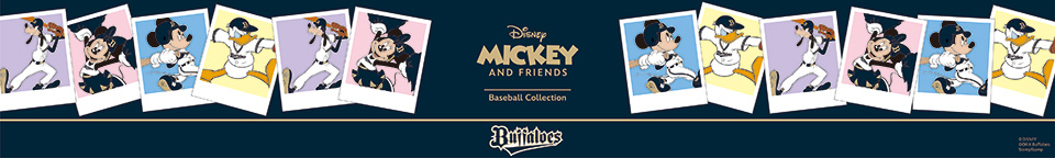4月23日(火)より、ディズニーキャラクターたちがバファローズのユニフォームを身にまとった特別デザインを使用した「Disney MICKEY AND FRIENDS Baseball Collection」を発売いたします。