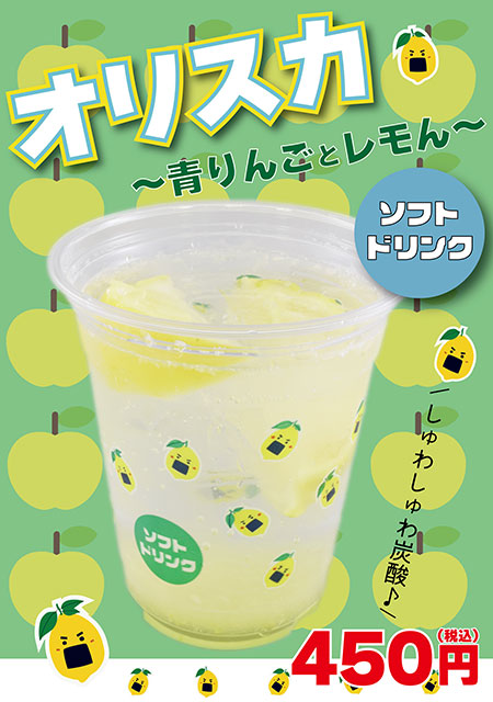 | コメント | オリっこも飲めるオリレモん!ストローでかき混ぜてグリーンアップルの風味が合わさったレモンスカッシュをお楽しみください! |