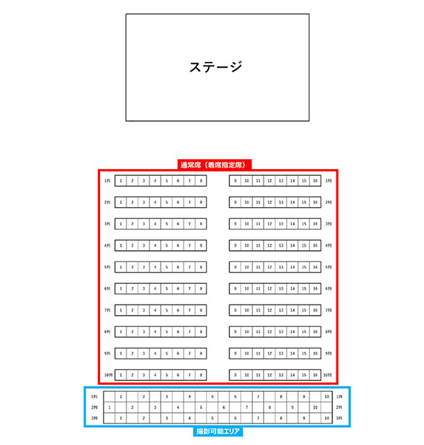 ※全席指定席。通常席は着席、撮影可能エリア席は立ち見席となります。