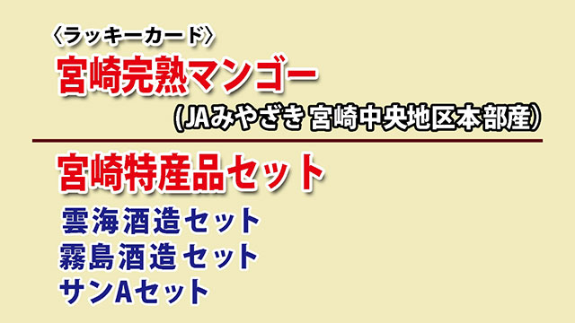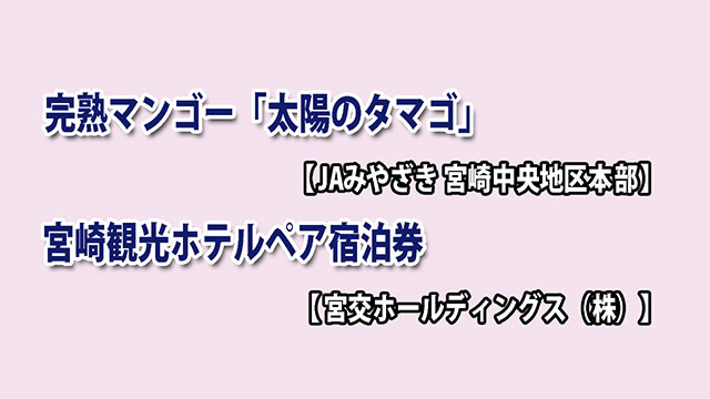 各日入場者10,000名へ配布するサンプリングバッグには宮崎のイベント情報などを掲載したオリジナルパンフレットを同封。また、ラッキーカードが同封されていた方には完熟マンゴー(JAみやざき宮崎中央産)等をプレゼントいたします。