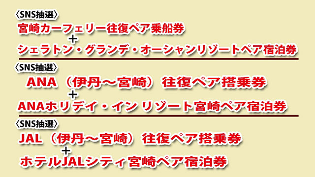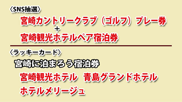 同時企画として、17日~18日の間に当日の球場での様子やキャンプ時の様子を【#キャンプ地みやざきシリーズ】を付けて投稿された方から抽選で、宮崎カーフェリーや航空券で行く宮崎への旅などが当たるWEB抽選会を実施いたします。ふるってご投稿ください!