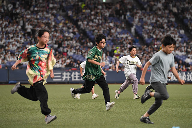 「Bsオリっこデー2024」が5月3日(金・祝)~5日(日・祝)の北海道日本ハムファイターズ戦で開催されました。オリっこに野球の楽しさを体験・体感してもらうプロジェクト「オリっこ大作戦」が始動。たくさんのオリっこたちが京セラドーム大阪で楽しい思い出を作りました。