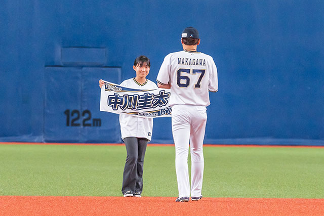 試合開始時には、THE KOBE CRUISEの乗船キャンペーンで当選された方々の始球式やスタメンキッズでゲームを盛り上げます。