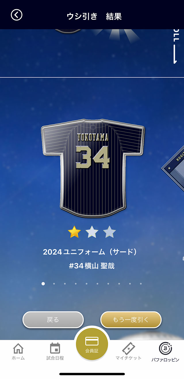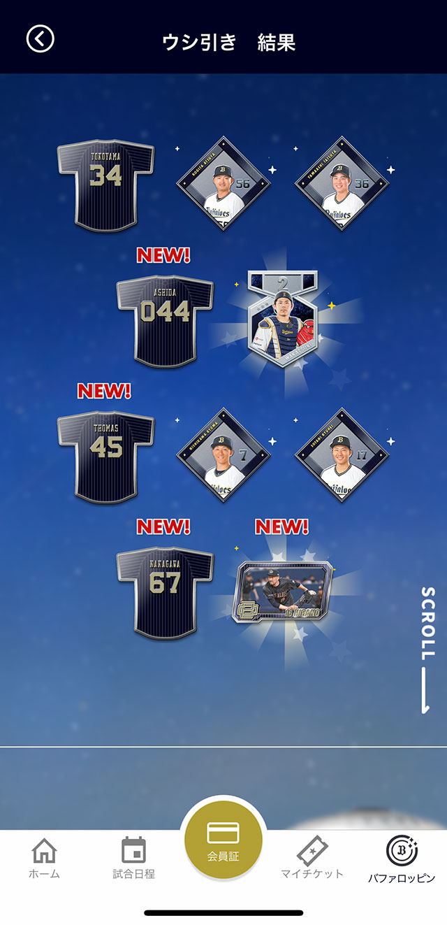 また、ウシ引きを10回引いた後に表示される結果画面を下にスクロールすると拡大されたピンバッジを確認することができます!