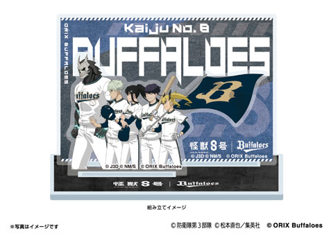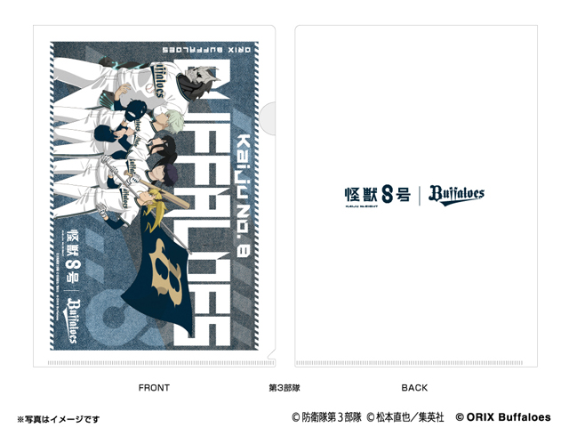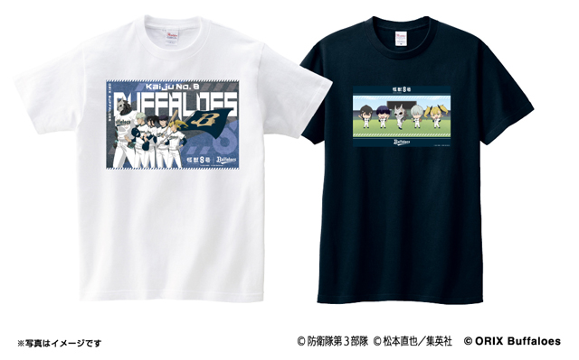 防衛隊第3部隊のメンバーがバファローズのユニフォームを着用した描き下ろしイラストを使用した貴重なオリジナルアイテム。Tシャツやフェイスタオルなどの観戦定番アイテムからクリアファイルやステッカーなどの小物雑貨まで、幅広いアイテムをご用意しております。