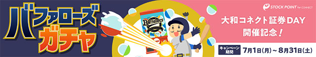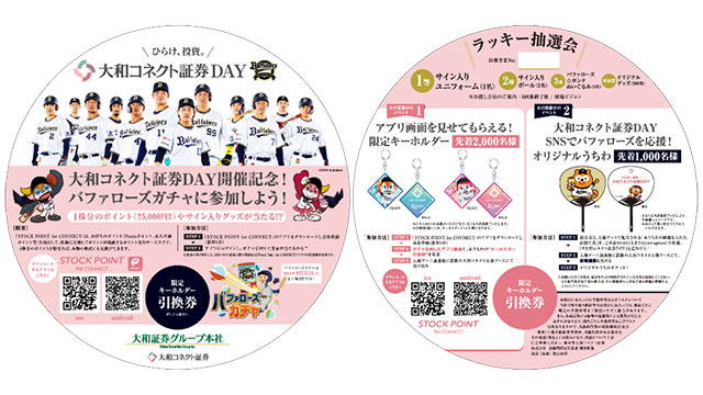 なお、限定キーホルダーは「大和コネクト証券DAY」(7/21)を観戦されるお客様が対象ですが、「StockPoint for CONNECT」の「バファローズガチャ」はどなたでもご参加いただけます。